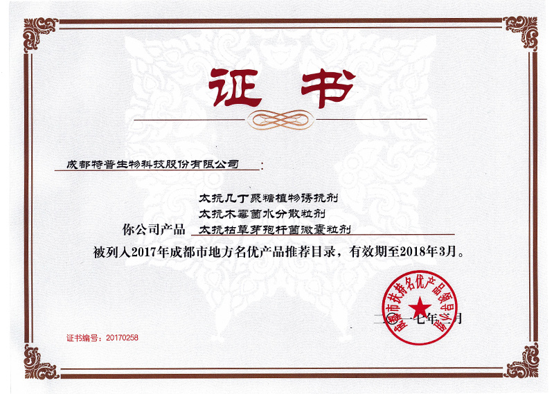 2017成都市名優(yōu)產(chǎn)品證書(shū)