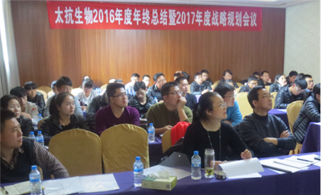 會(huì)上,公司各區(qū)域負(fù)責(zé)人就2016年的銷售情況做了總結(jié)匯報(bào),全年總銷量比去年增長(zhǎng)70%,太抗在各區(qū)域的品牌影響力顯著提升,尤其是今年新上市的產(chǎn)品——枯芽春?枯草芽孢桿菌在云南區(qū)域熱賣得到了代理商的極大肯定和全力推廣,太抗哈茨木霉菌也一度出現(xiàn)供不應(yīng)求的斷貨現(xiàn)象;各銷售精英紛紛上臺(tái)分享了在工作中遇到的難題及解決方法,用自身一段段經(jīng)歷證實(shí)了那句話:賣產(chǎn)品,首先要賣的是自己。只有自身的專業(yè)知識(shí)讓客戶信服,只有自己的敬業(yè)精神讓客戶滿意,只有自己的不辭辛勞讓客戶認(rèn)可,才能讓客戶從心底里接受并信任我們的產(chǎn)品;技術(shù)經(jīng)理們也用一系列實(shí)實(shí)在在的圖片數(shù)據(jù)講解了一年來各室內(nèi)、大田試驗(yàn)結(jié)果,提煉出太抗系列產(chǎn)品的新賣點(diǎn)。
